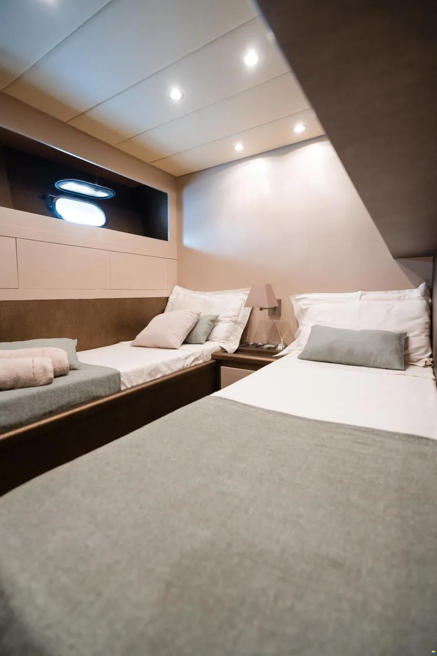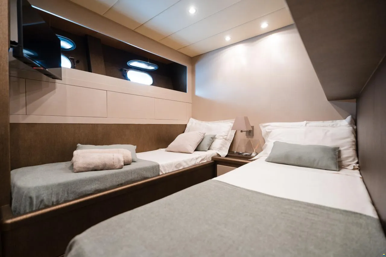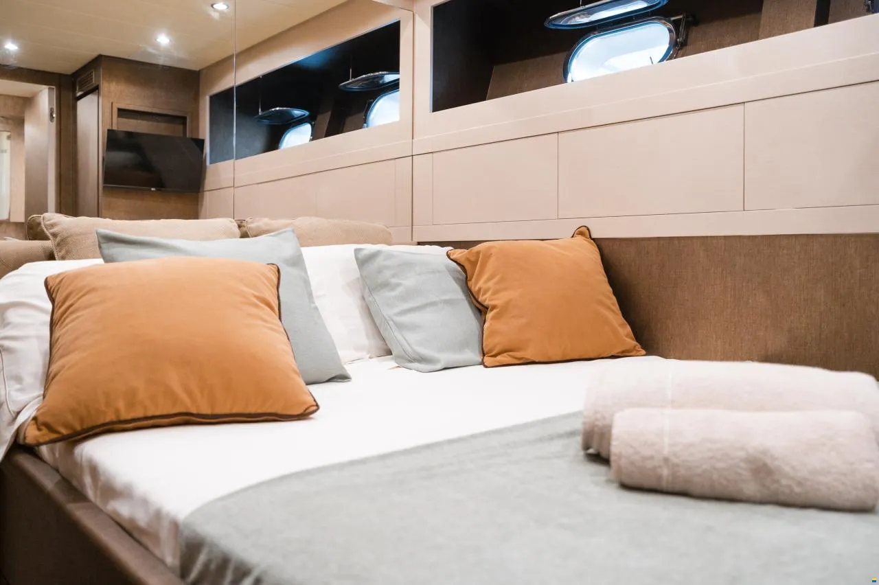 The Arno Leopard 24M, built in 2006 by Cantieri di Arno in Italy, is a remarkable combination of power, elegance, and refined Italian craftsmanship. Designed for discerning owners who seek both performance and comfort, this yacht features twin MTU 12V2000M91 engines coupled with a Rolls-Royce KaMeWa Hydrojet propulsion system, offering smooth, quiet cruising and the versatility to reach shallow coves inaccessible to most vessels. Recently refitted with new furnishings and high-end equipment, she presents in outstanding mechanical and cosmetic condition - the perfect expression of Mediterranean style and contemporary luxury.