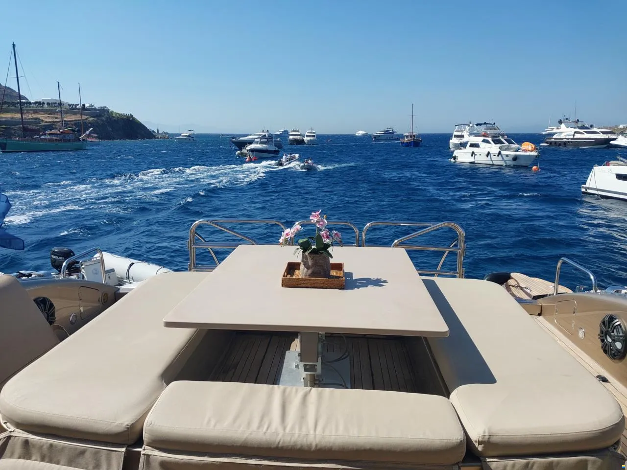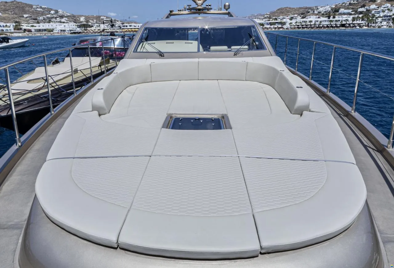 Two large sunbathing areas: 2.8 × 2.4 m (forward) and 3.5 × 6 m (aft)