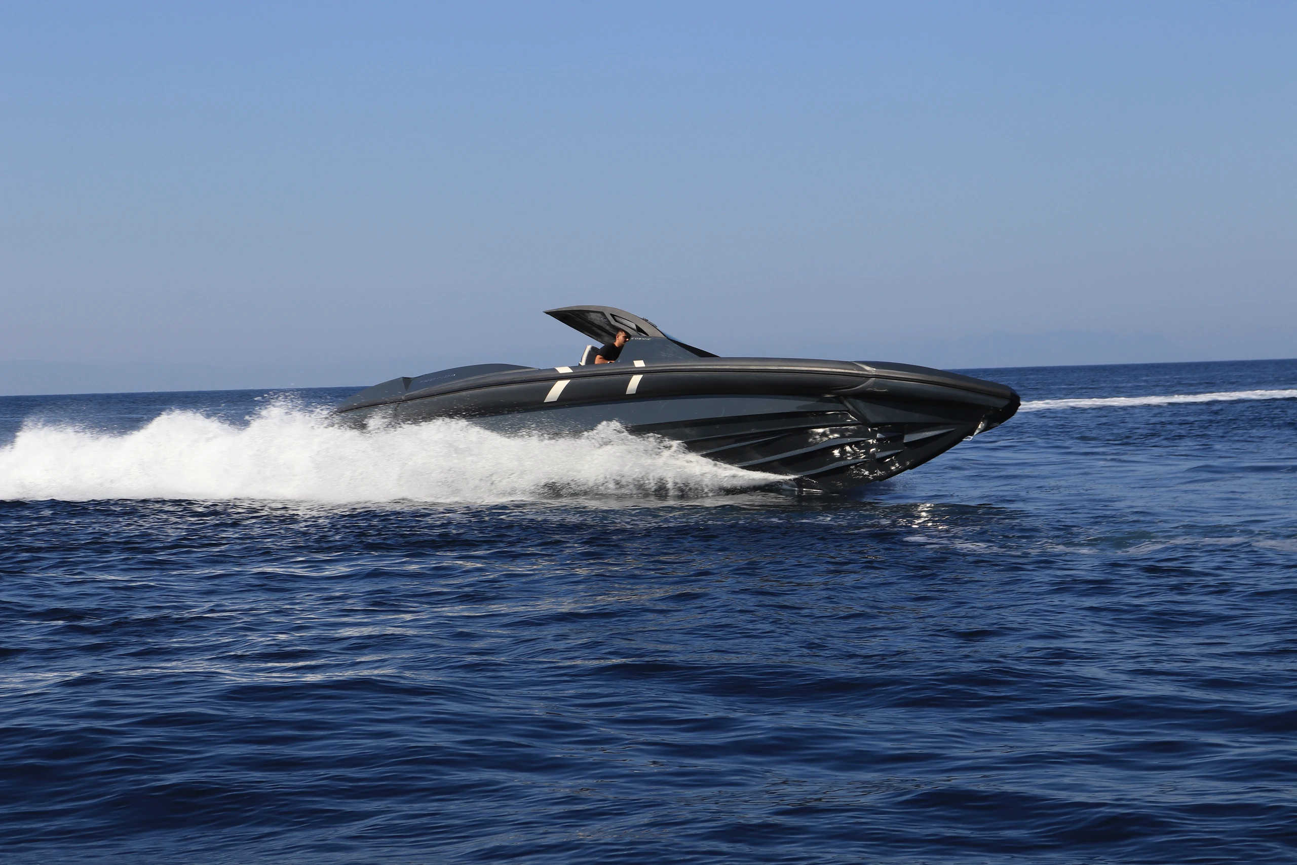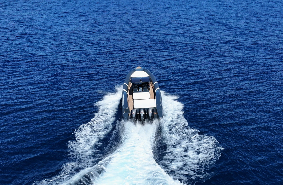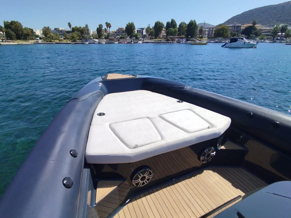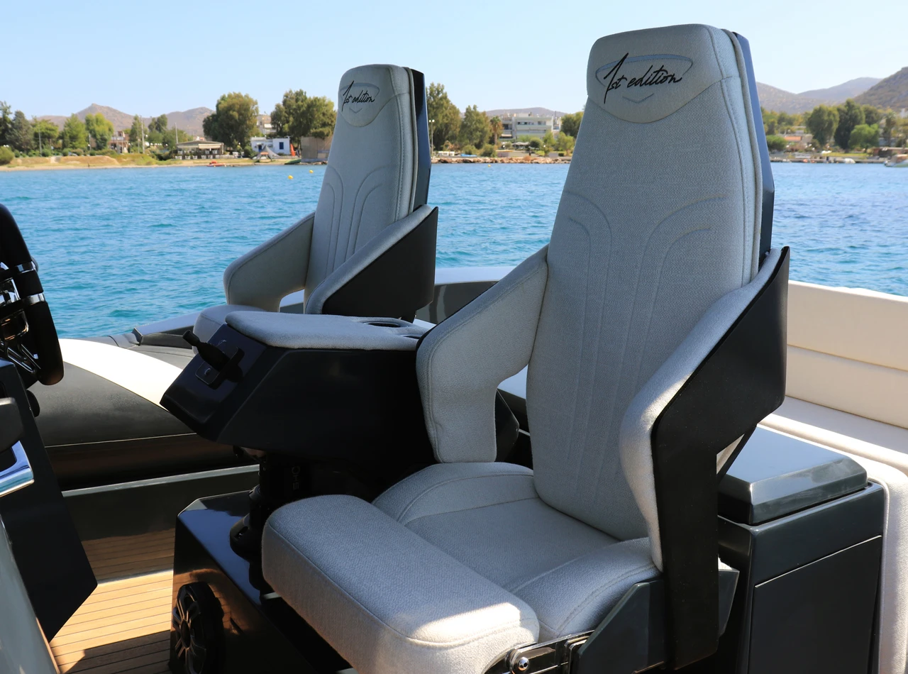 Thanks to the advanced hull design with the unique Double Chine Effect, 3 Ventilated Steps, and Anti-Dive System, the boat ensures an extremely smooth ride and impressive fuel economy even in difficult conditions. It has been tested in seas up to 6 Beaufort scale, maintaining absolute comfort, and can easily cope with more demanding conditions (up to 7 Beaufort scale). Its greatest advantage is its unsurpassed stability in rough seas, always offering safety and high performance.
