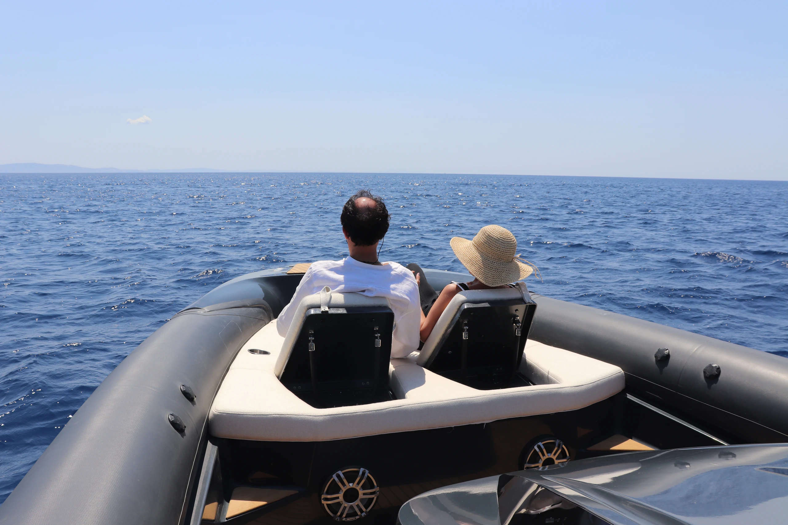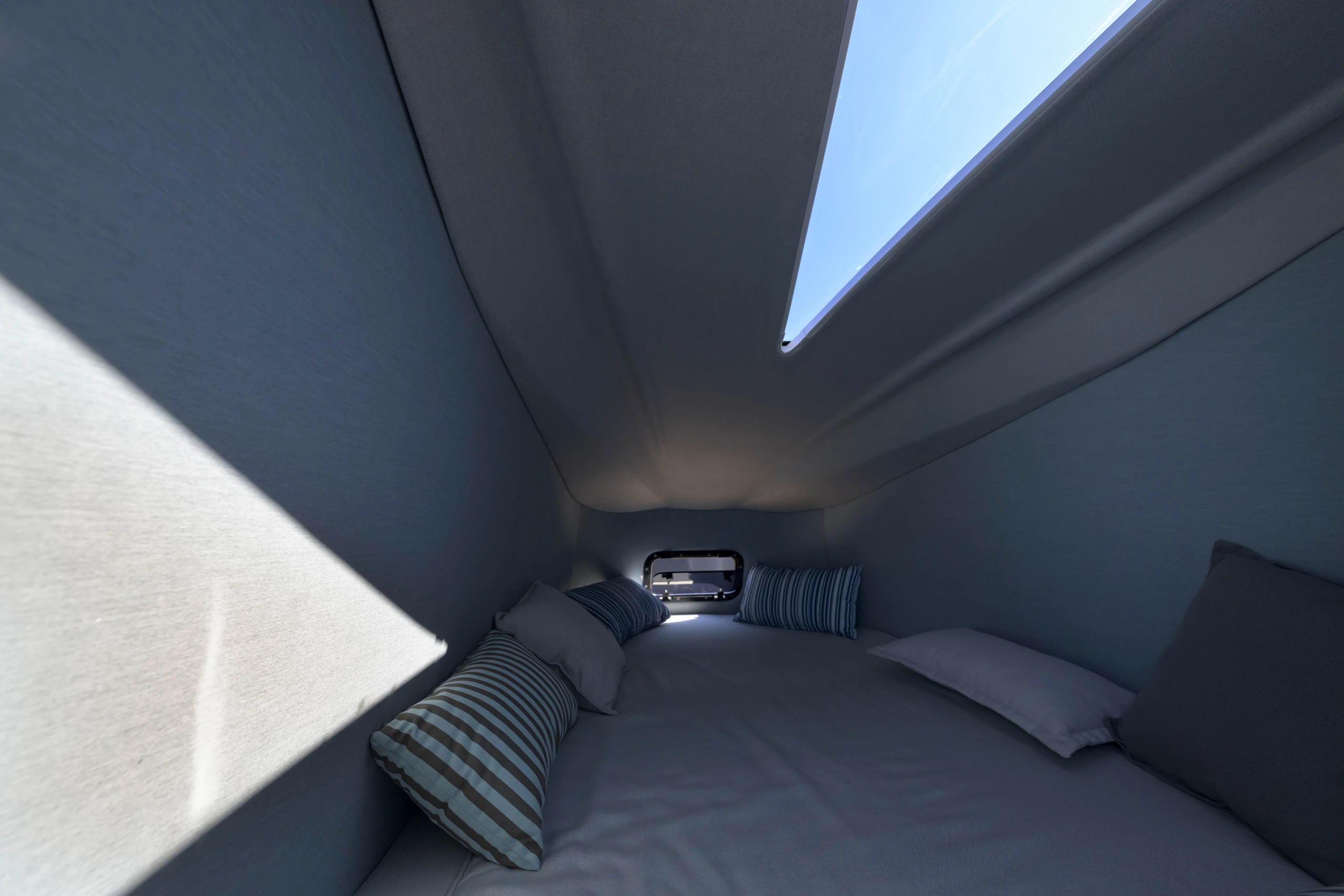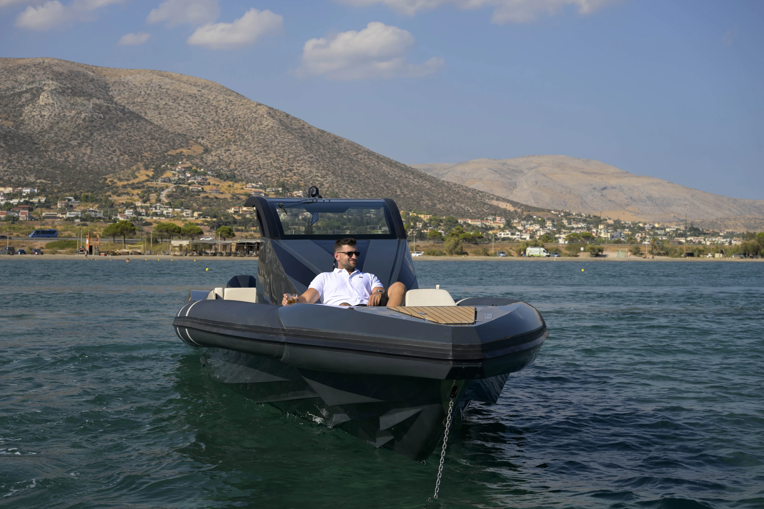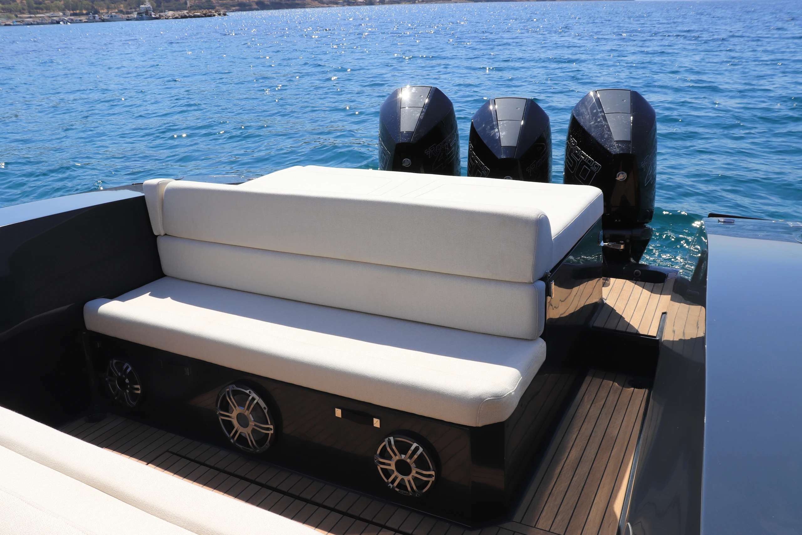 Thanks to the advanced hull design with the unique Double Chine Effect, 3 Ventilated Steps, and Anti-Dive System, the boat ensures an extremely smooth ride and impressive fuel economy even in difficult conditions. It has been tested in seas up to 6 Beaufort scale, maintaining absolute comfort, and can easily cope with more demanding conditions (up to 7 Beaufort scale). Its greatest advantage is its unsurpassed stability in rough seas, always offering safety and high performance.