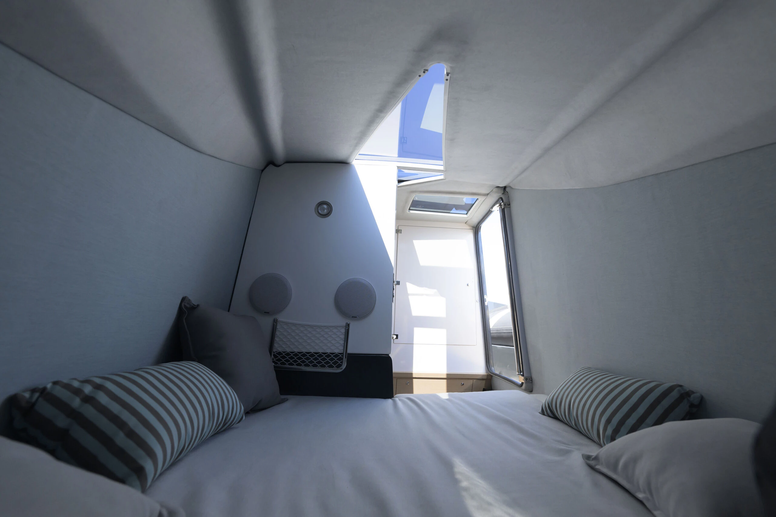 Spacious cabin with double bed and ceiling height of 1.90 m