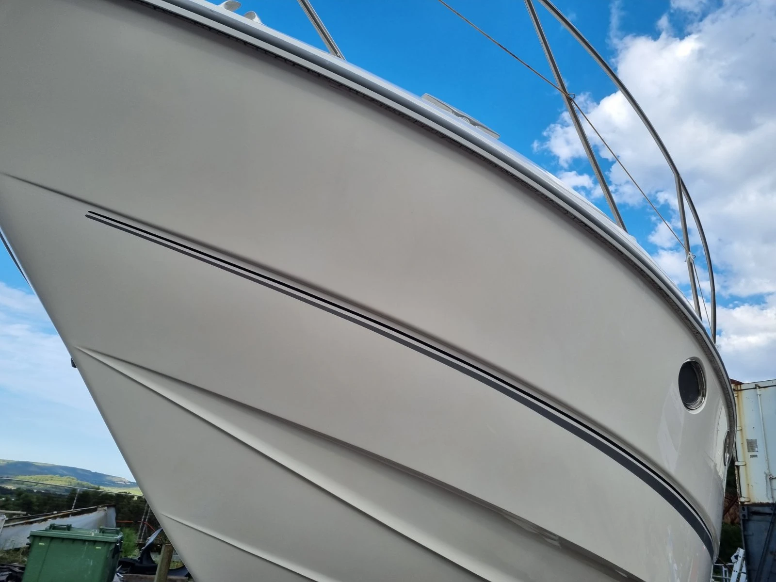 Το σκάφος βρίσκεται σε καλή αισθητική και λειτουργική κατάσταση. Δεν απαιτείται βαφή. Έχουν τοποθετηθεί νέα αυτοκόλλητα Fairline και νέες ταινίες ισάλου, ενώ δεν υπάρχουν χτυπήματα.